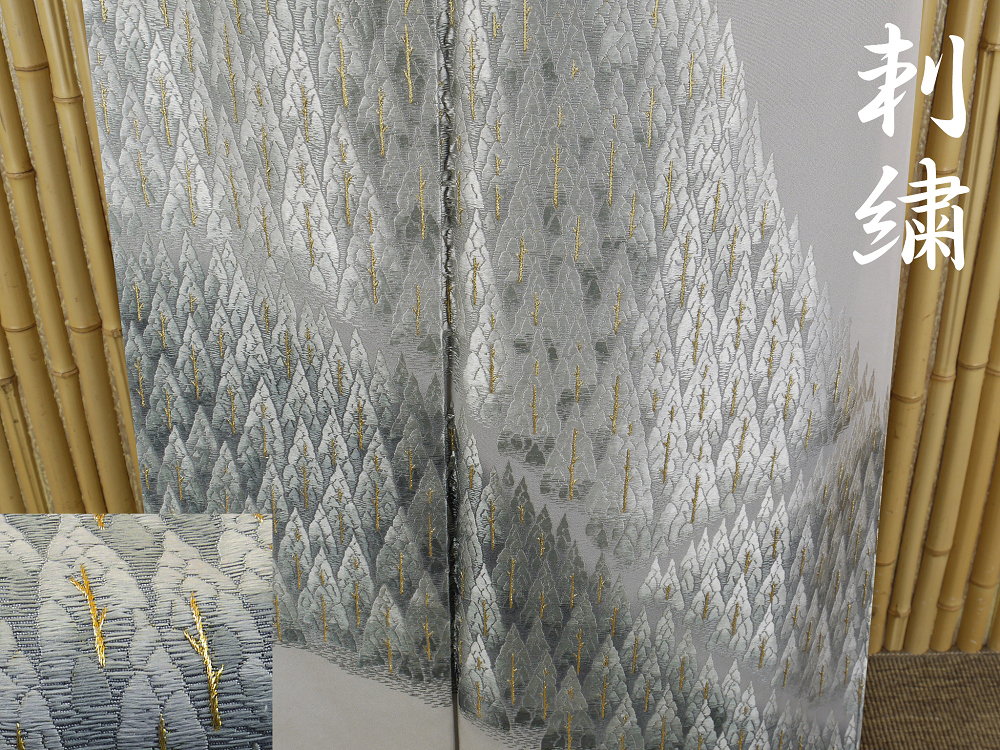 - 【京かんざし】b-584★特選訪問着 総刺繍 蘇州刺繍 躾糸付未着用グレー身丈166 cm裄丈69.5 cm★即決送料無料!