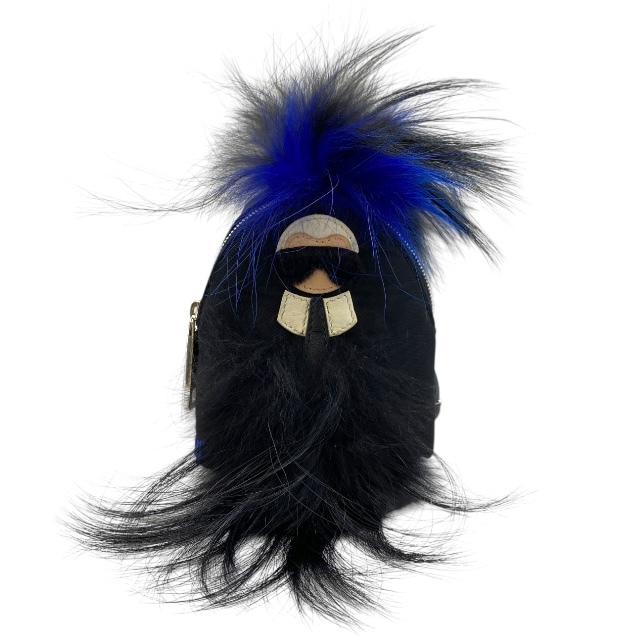 - 【美品】FENDI フェンディ カーリト 7AR512 キーホルダー バッグチャーム チャーム スタッズ ナイロン レザー ファー ブラック
