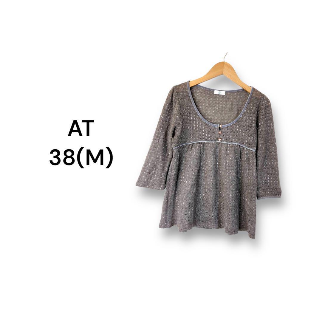 - AT 薄手ニット 七分袖【38】ブラウン 透け感 フロントボタン 毛混