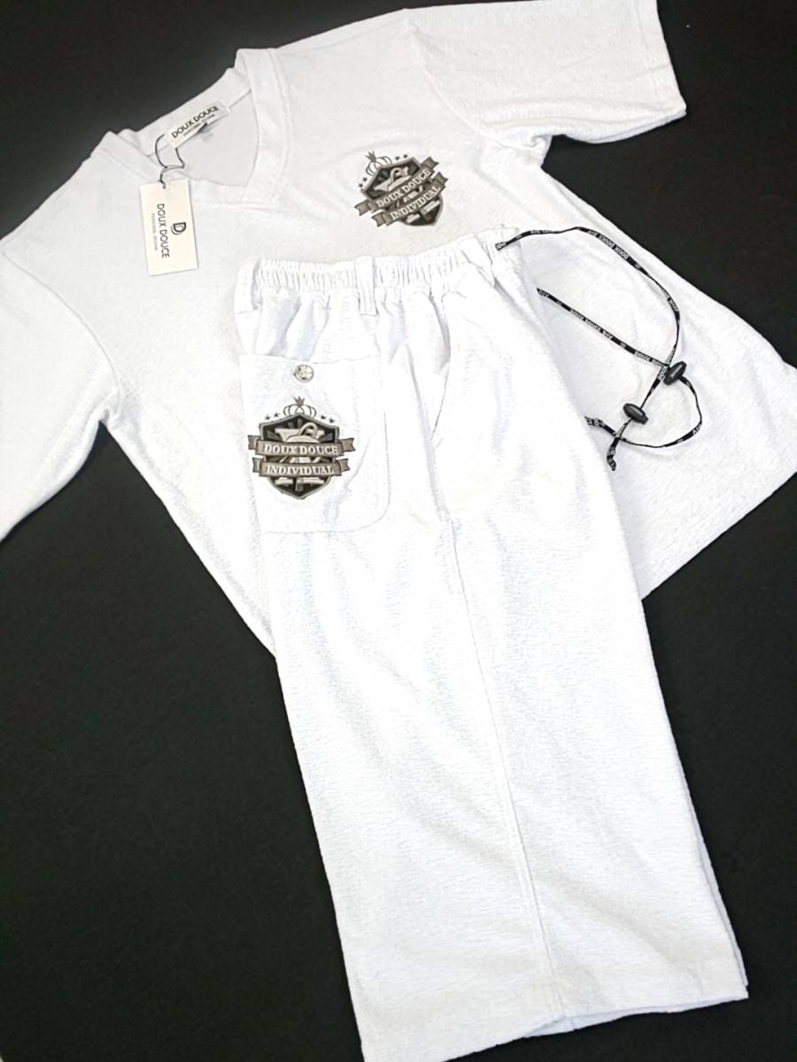 > 新品 SALE!! 特別価格!! 送料無料 DOUX DOUCE デュークス デューチェ Vネック 半袖 ショートパンツ 上下セット Lサイズ 白 310808S