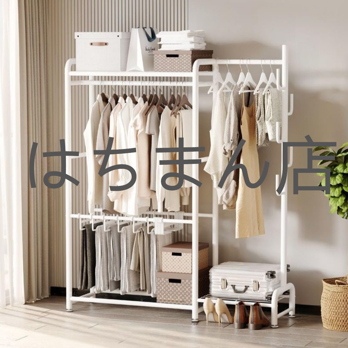 - 多機能ハンガーです ハンガーラック 頑丈 洋服ラック 2段 大容量 たっぷり収納 メタルラック スチールラック ワードローブ (白です,130cm)