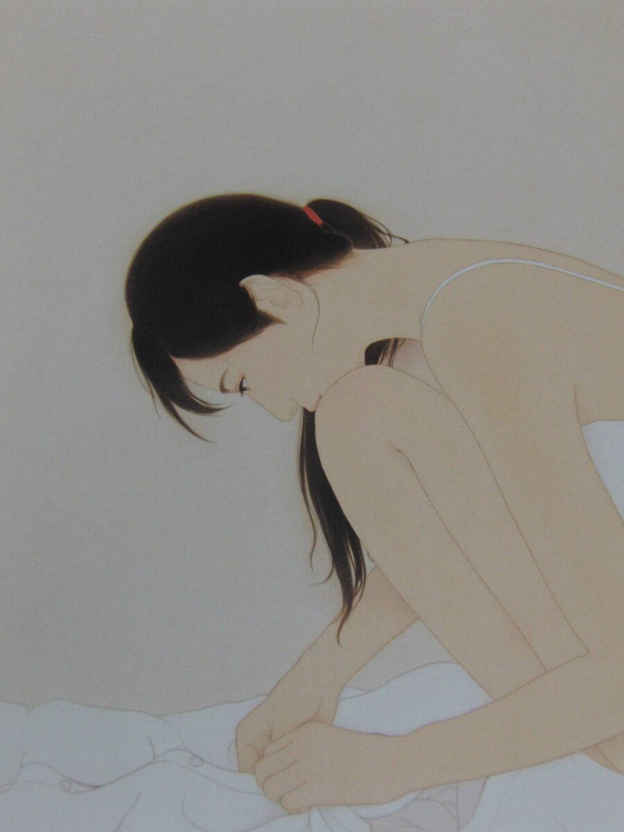 - 松浦シオリ、【留める】、希少な額装用画集より、厳選、新品額装、マット額装付、状態良好、美人、日本人画家
