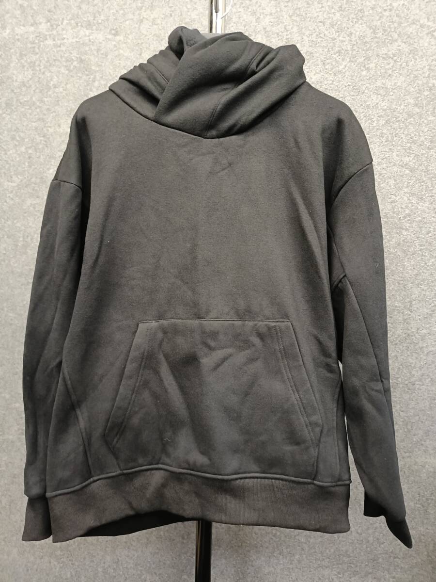 - ★メンズ 裏起毛パーカー 黒 ブラック ブランド不明 ダブルネックパーカー XL