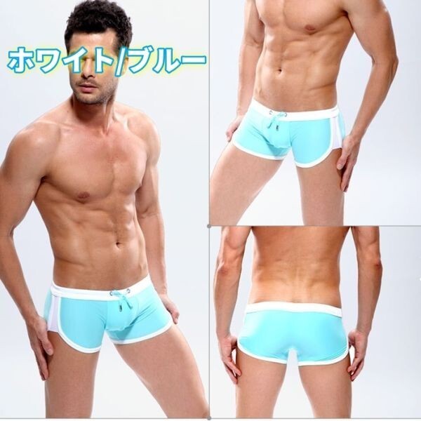 - メンズ水着 フィットネススイムウエア スイムパンツ 海水パンツ 海パン 水泳 競泳水着 ライトブルー LL