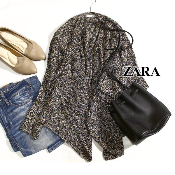 > 美品 ZARA KNIT ザラニット 可愛いノーボタン リボンニット ストレッチ カーディガン M 春 秋 25C01