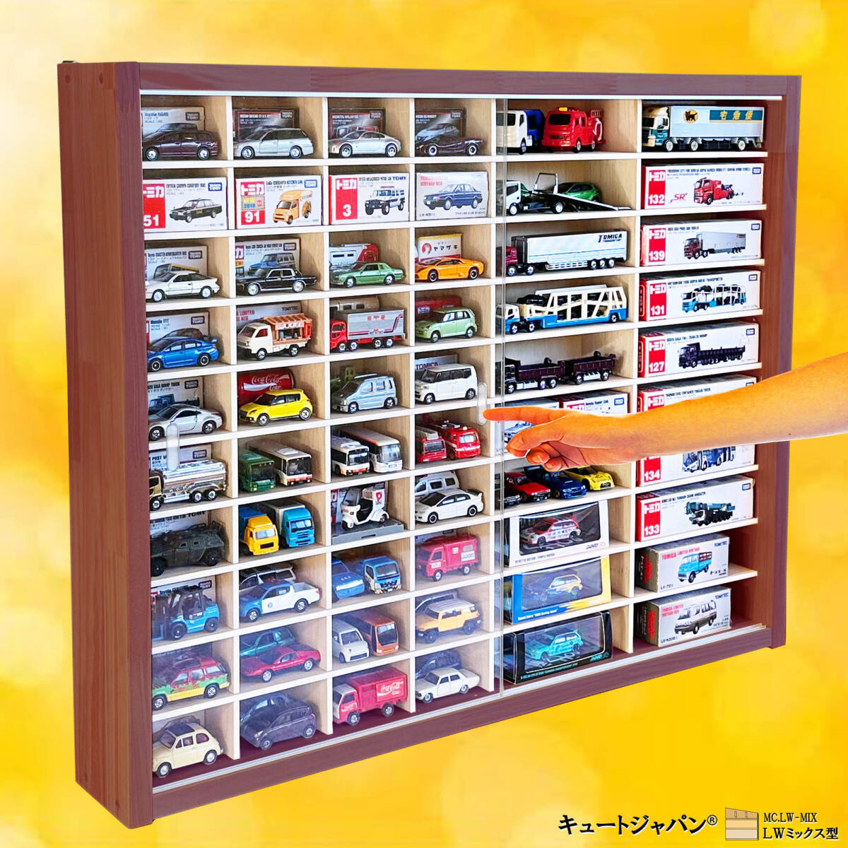 - 送料無料★【ミニカーケース】1/64スケールミニカー80台&ロングトミカ40台収納可能ケース アクリル障子付 マホガニ色塗装 日本製