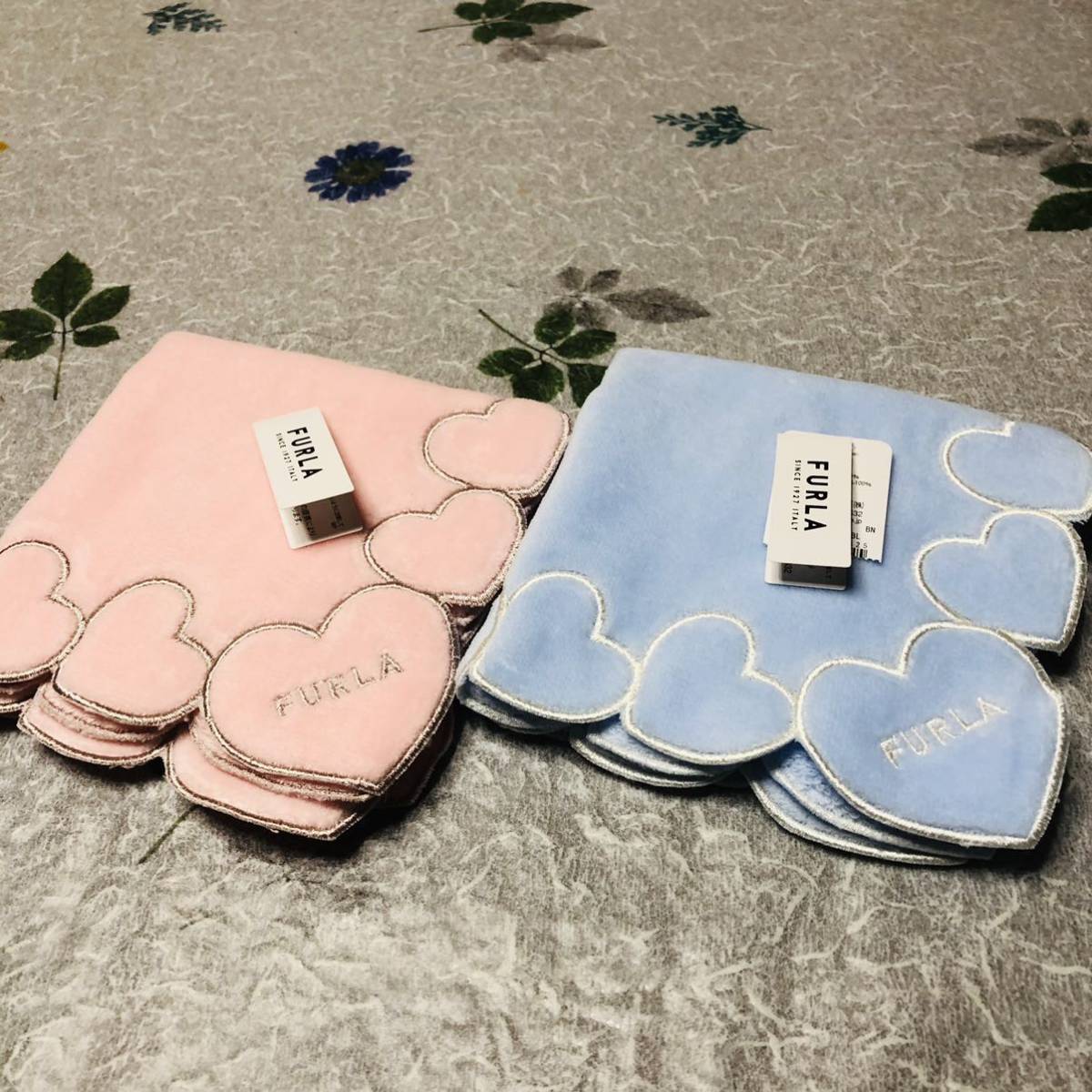 - フルラ タオルハンカチ 2枚 (28×28cm) ブルー・ピンクハート 「新品 」