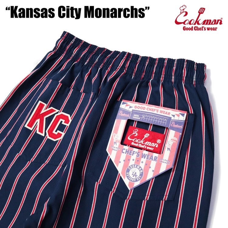 - Lサイズ Kansas City Monarchs クックマン シェフパンツ 紺 ストライプ COOKMAN Ballpark Collection Chef Pants