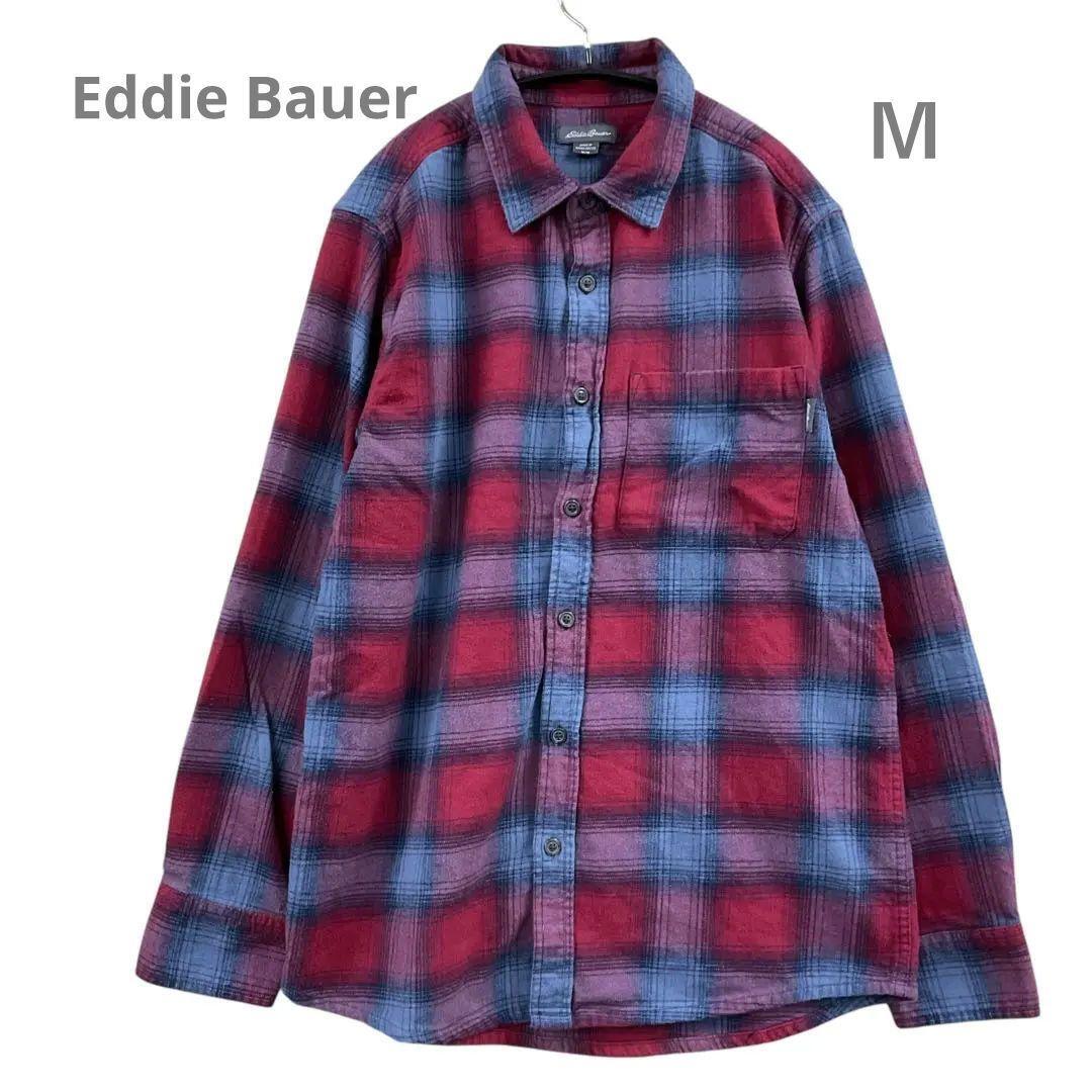 - エディーバウアー メンズ長袖フランネルシャツ M 赤×灰 チェック 【1906】