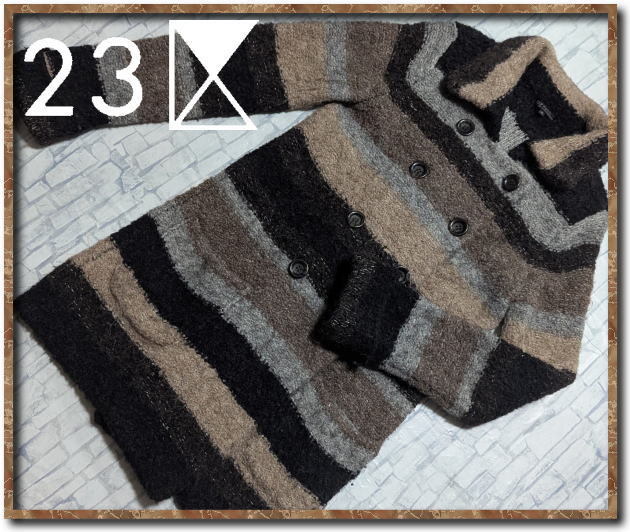 - ☆23区 アルパカ混マルチボーダーニットジャケット 茶系☆