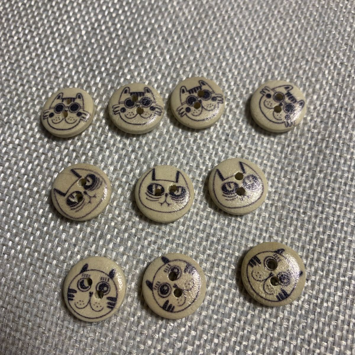 - 猫の木製ボタン 1.5㎝ ハンドメイド 10個セットf