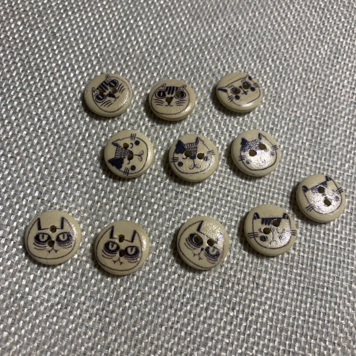 - 猫の木製ボタン 1.5㎝ ハンドメイド 11個セットj