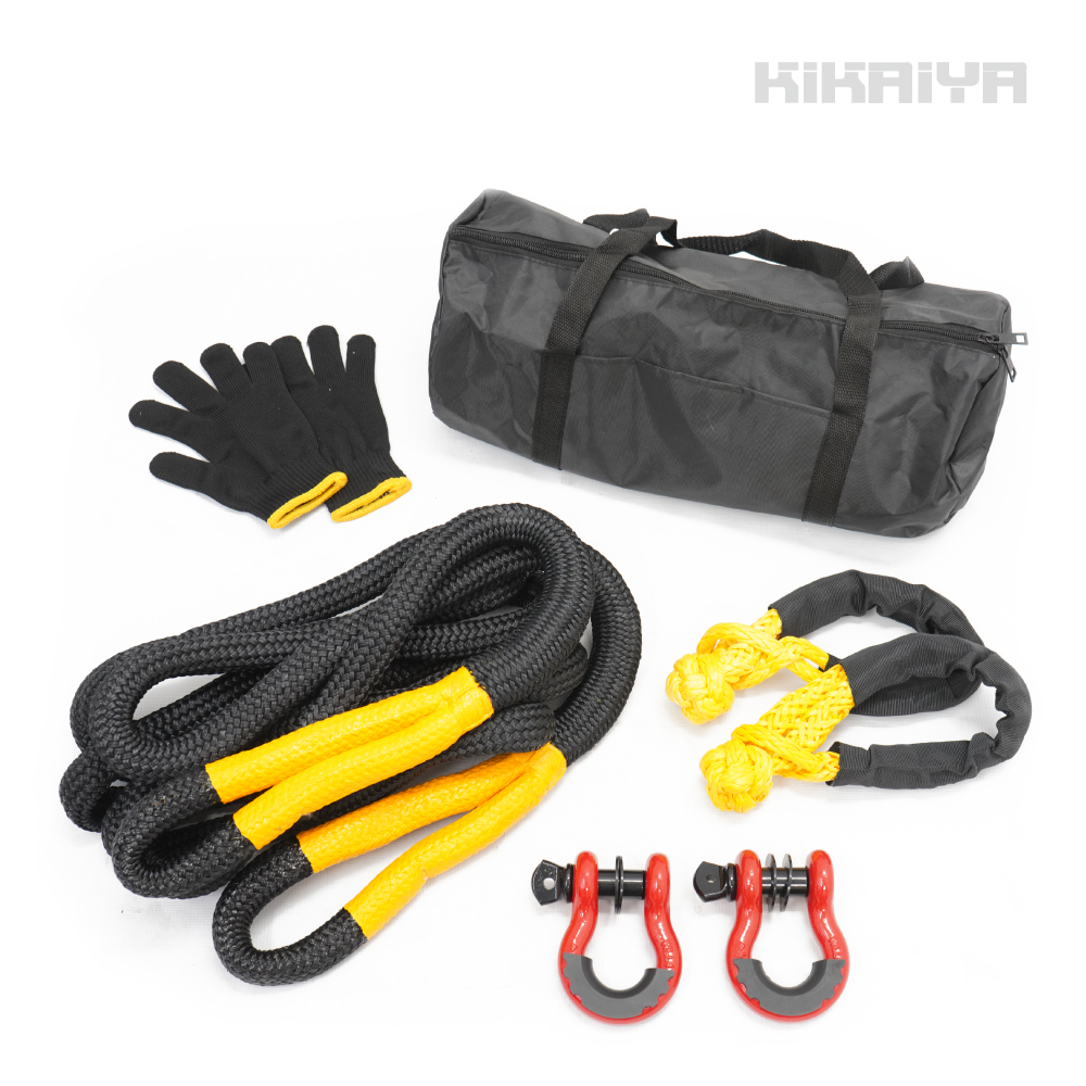 - 牽引 ロープ セット 6M 30000LBS シャックル バッグ スタック 救出 雪 ぬかるみ オフロード リカバリーロープ