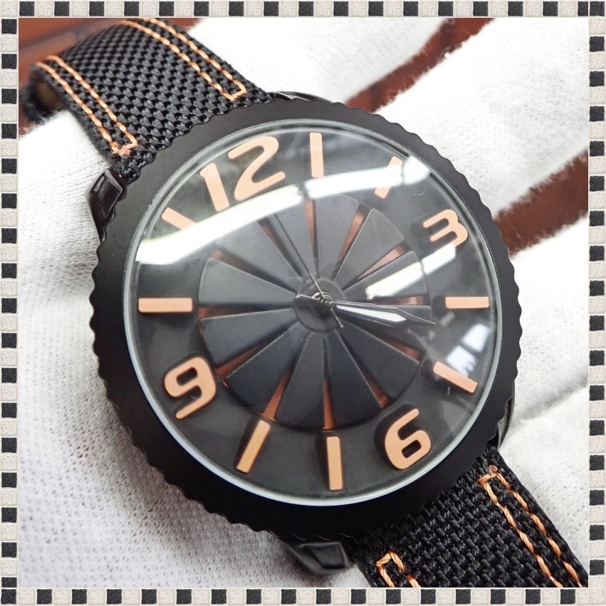 - 【 美品 】 Franc Temps ROUE クォーツ 回転式 サイクロンダイアル オレンジ 50mm メンズ 腕時計 電池交換済 フランテンプス