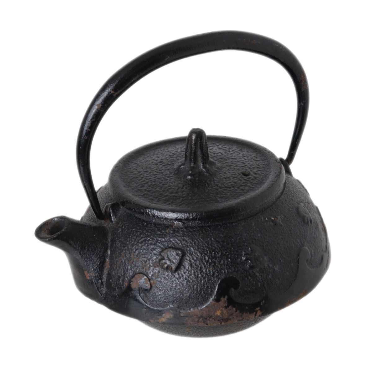 - 南部鉄器 急須 鉄瓶 3型 海 飛ぶ魚 内側ホーロー加工 黒 胴径約10.5×胴高約5.5cm ※蓋・取っ手・注ぎ口含まず NT Bランク