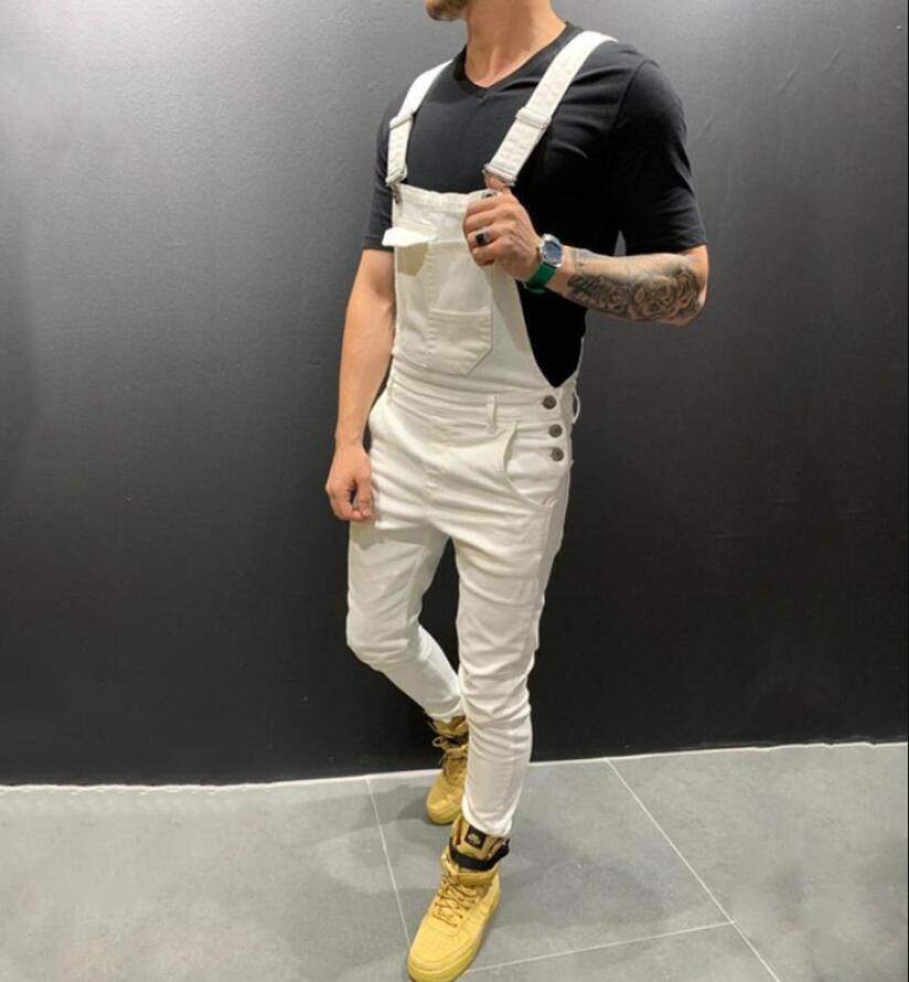 - 新品*メンズサロペットパンツ オーバーオール デニム オールインワン ジーンズ つなぎ サスペンダーズボン ペインター ロング ボトムス*白