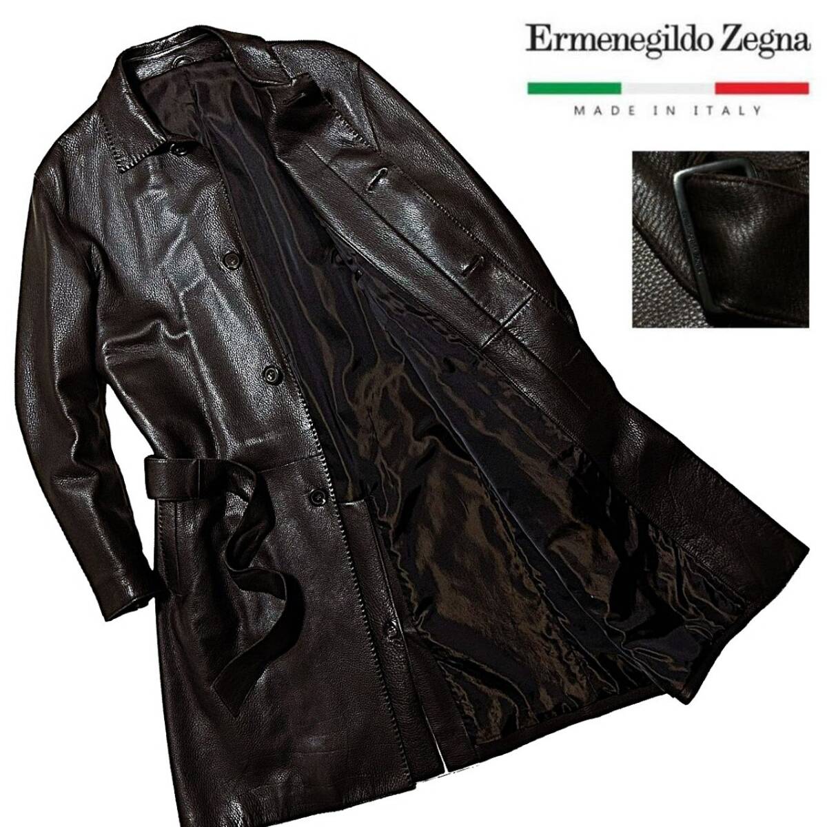 - 贅の極! 至高 伊製 80万 新品 エルメネジルドゼニア Zegna 最高級鹿革 極上ディアスキン ハンドステッチ レザーコート 46 レザーのカシミヤ
