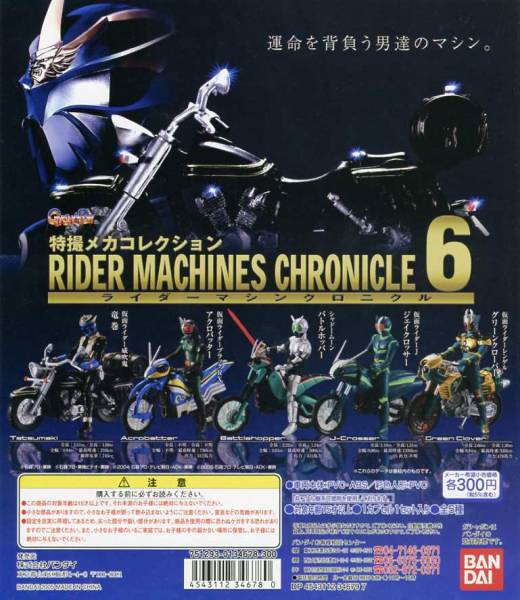> ◆特撮メカ 仮面ライダー ライダーマシン クロニクル 6…全5種 (アクロバッター/バトルホッパー/他) バイク ミニチュア フィギュア BANDAI