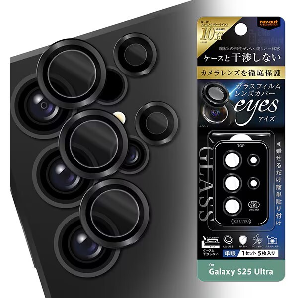 - レイアウト Like standard カメラ ガラスフィルム 10H 単眼 レンズカバー 5枚 1セット入り ブラック Galaxy S25 Ultra RT-GS25UFGCALCB