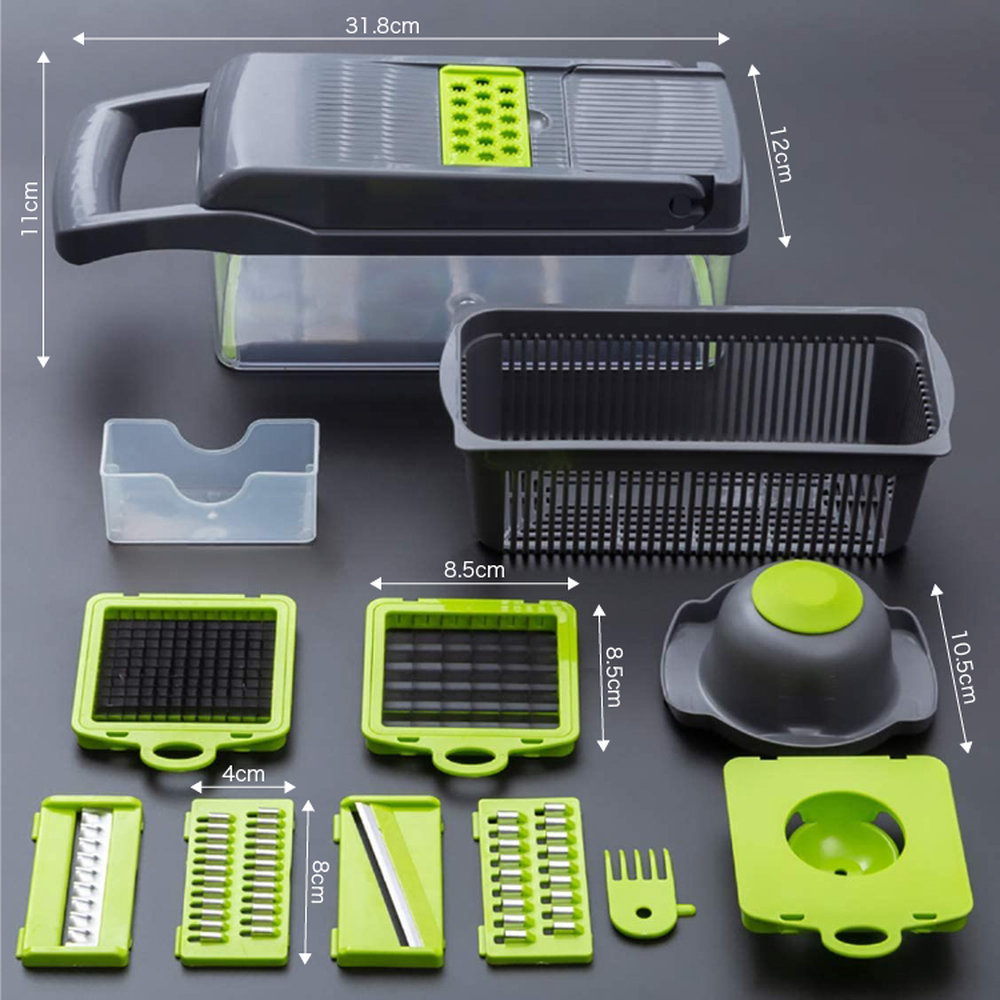 - マルチスライサーセット 万能野菜カッター 角切り/薄切り/千切り/すりおろし 水切りかご付 お手入れ簡単 食材スライサー GWMTSLC71