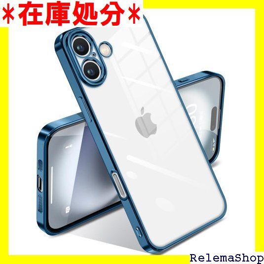 - iPhone 16 用 ケース クリア 耐衝撃 アイフ PU 柔らかい ワイヤレス充電 人気 保護カバー ブルー 2542
