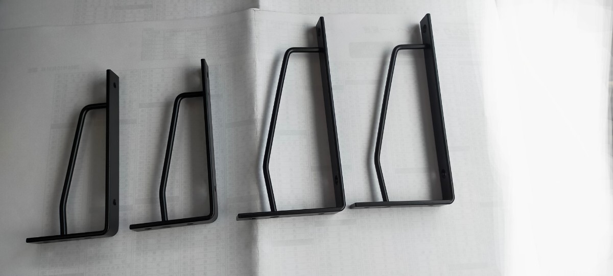 > アイアン棚受け金具 4点 L型棚受け 艶消し黒 マットブラック 7.3x15cm 2点 5.5×12cm 2点 L字アングル ステー ブラケット