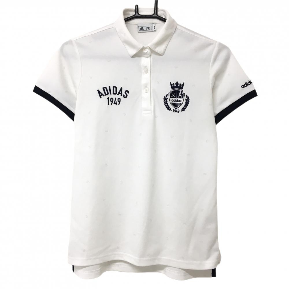 > 【美品】アディダス 半袖ポロシャツ 白×ライトグレー 数字総柄 ロゴ刺しゅう レディース M/M ゴルフウェア adidas