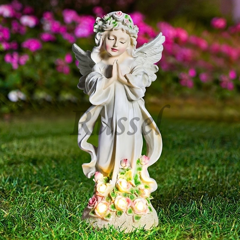 - ガーデンライト ガーデンオーナメント 天使 エンジェル 祈り 花 フラワー ソーラー 防水 ホワイト 白 庭 玄関 ポーチ ガーデニング