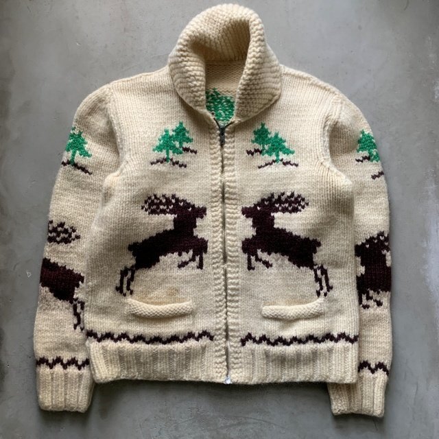 > 【Ladies】UNKNOWN カウチンニット セーター 生成り色 動物柄■ビンテージ アメリカ古着 レディース 70s ウールジャケット トナカイ
