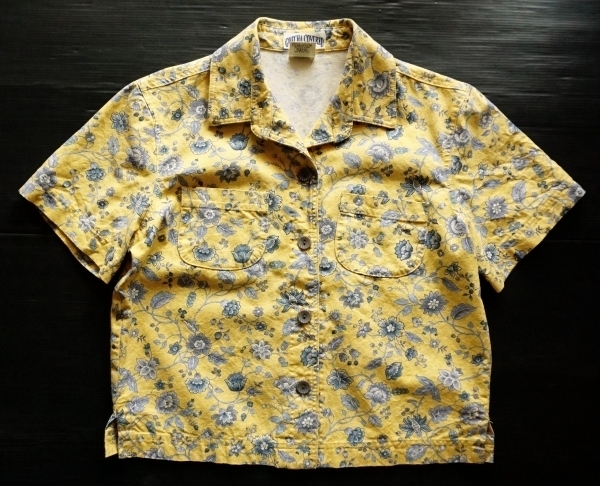 > ◆ USA製 GOTCHA COVERED 半袖シャツ レディースM 黄色 花柄/ビンテージ オールド アメリカ古着 レトロ 90's