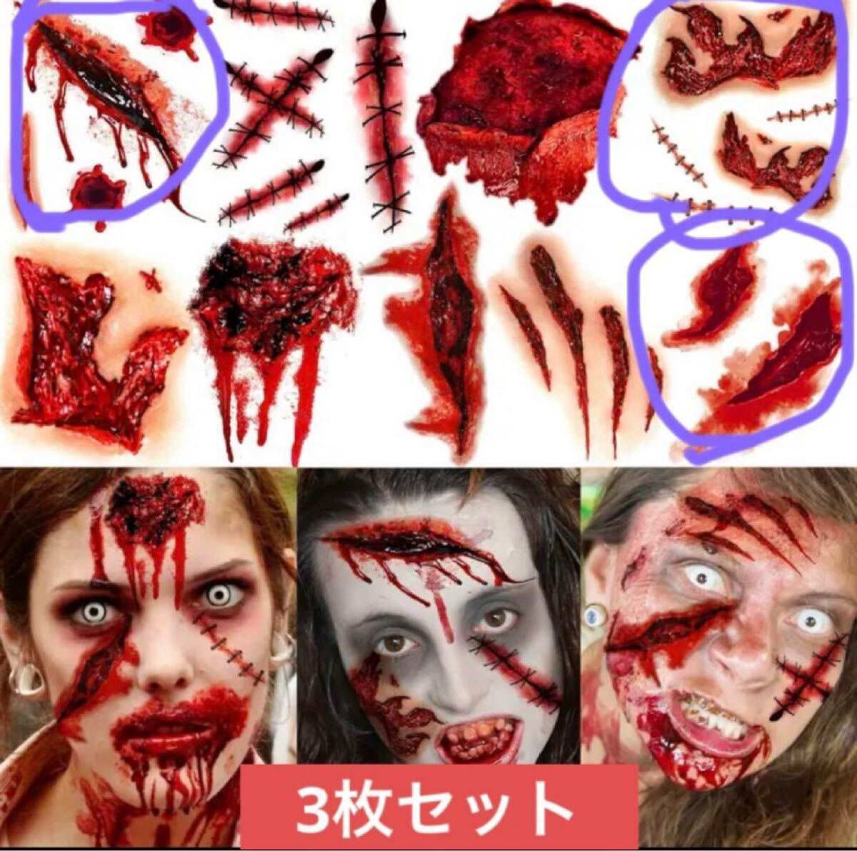 - 血の傷 傷跡 ハロウィン ゾンビ コスプレ タトゥーシール 3シート②