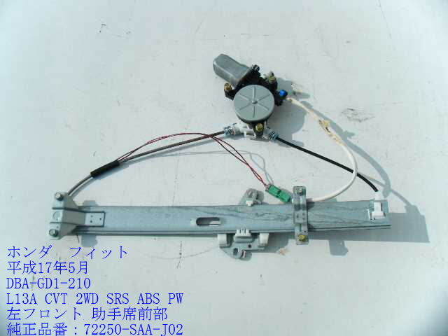 - ◆DBA-GD1 ホンダ フィット FIT 左 フロント レギュレーターモーター パワーウインドウモーター 助手席前部 72250-SAA-J02 [10765]