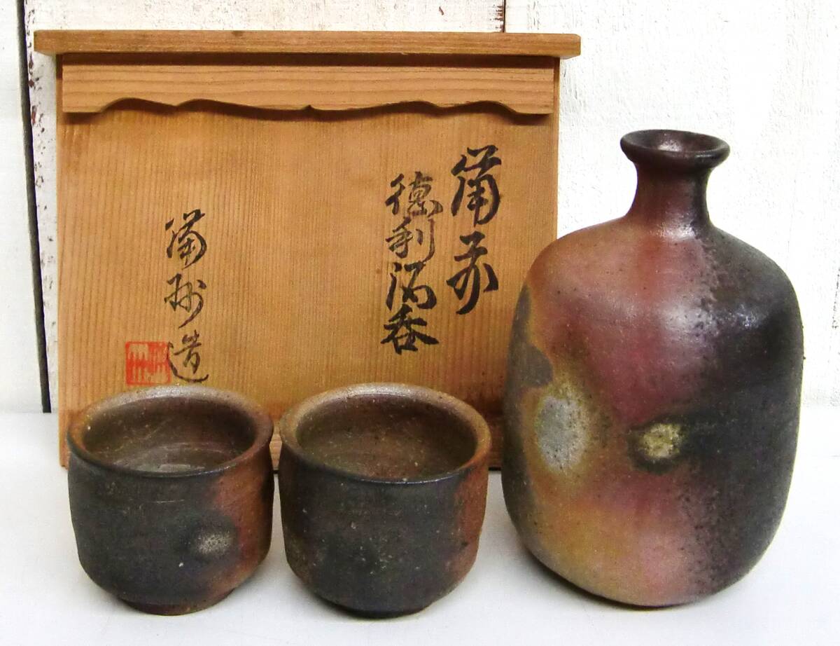 > *伝統工芸 工芸美術 *備前焼 *徳利酒呑 *銘入り 酒器 ぐい呑 お猪口 *古物 古道具 古美術 骨董 *BIZEN JAPAN *共箱付き