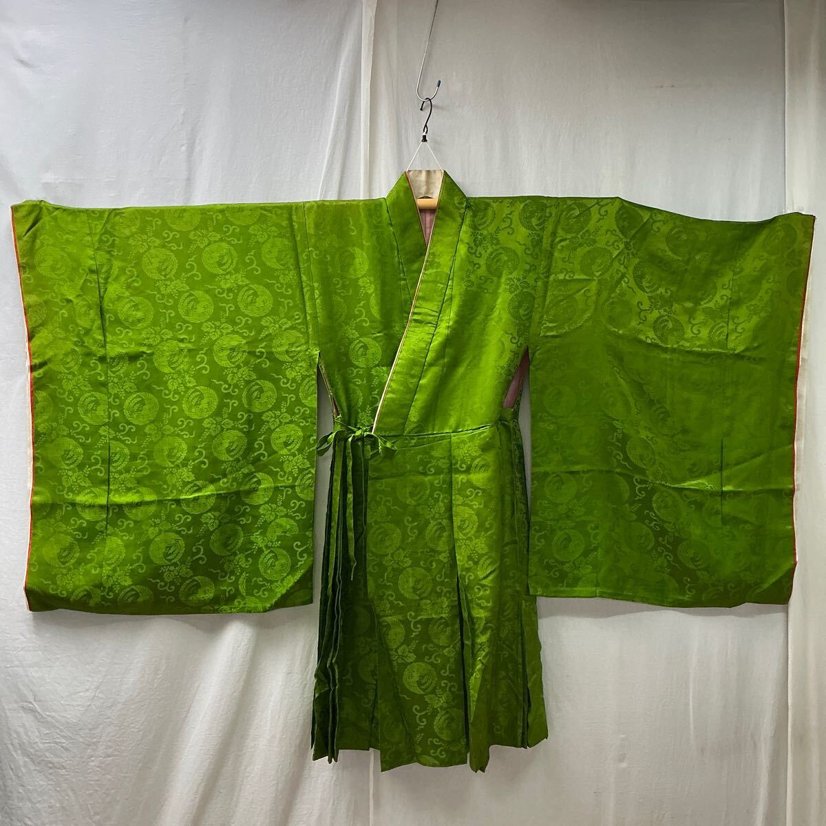 - 【A888】送無 浄土宗 上衣 絹 色無地 緑色 地模様 鳳凰 桐紋 法衣 法要 装束 着物 僧侶 お坊さん
