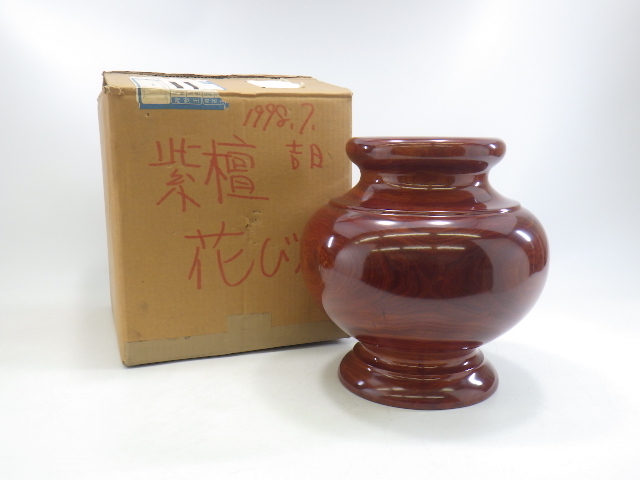 - h5B105Z- 紫檀 木製 花瓶 壷 未使用 保管品 約5Kg