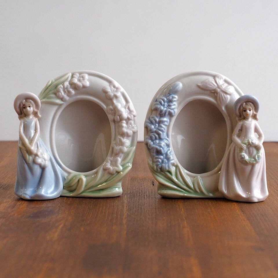 > 【送料無料】MOVITEX 陶器 フィギュリン フォトフレーム ペア フランス蚤の市 88010