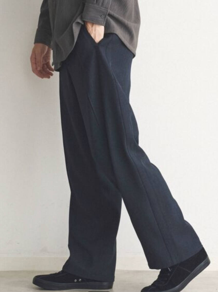 > THE SHOP TK ザ ショップ ティーケー TAKEO KIKUCHI タケオキクチ サイドライン シャークスキン イージーパンツ 紺 ネイビー カジュアル