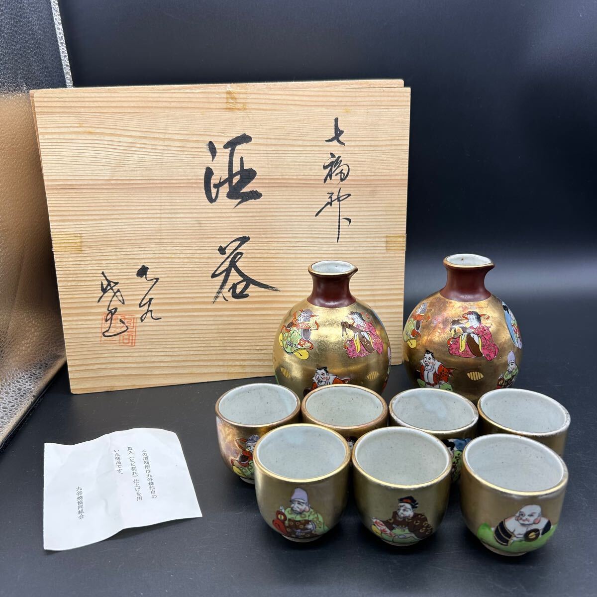 - 九谷暁堂 九谷焼 酒器 酒器揃い 徳利 盃 お猪口 ぐい呑み 七福神 金彩 酒器セット ト19