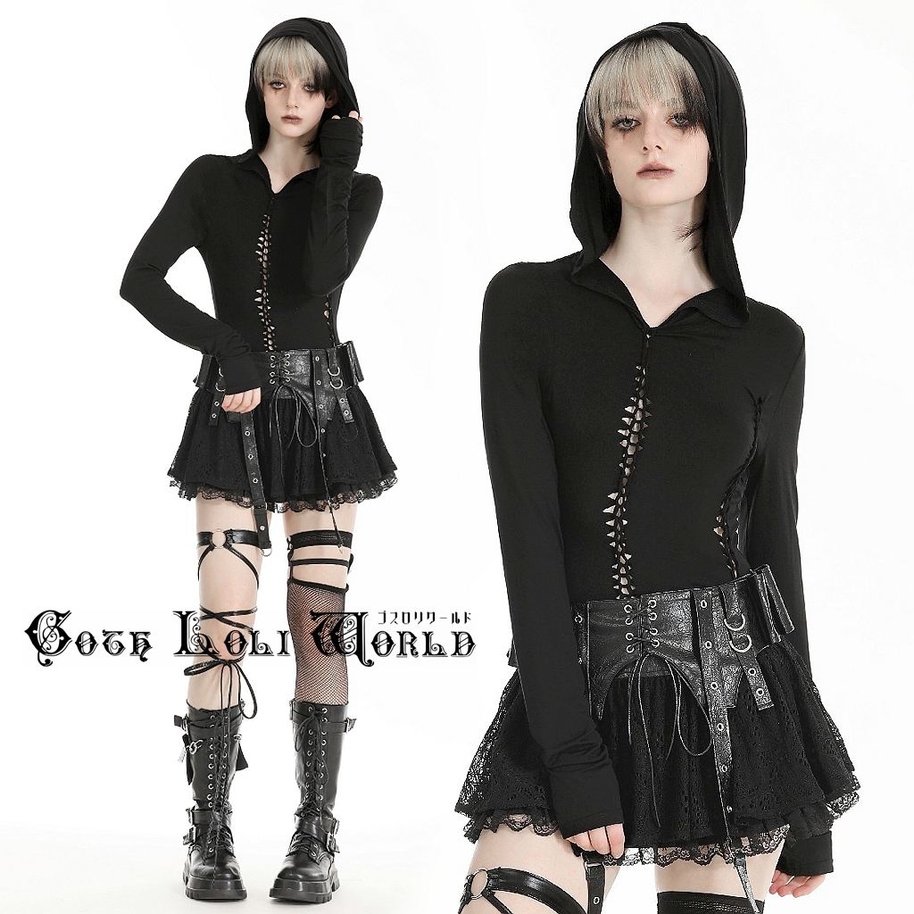 - TW572-M 編み上げカットアウト長袖フーディ変形 カットソー ゴスロリワールド ゴシック パンク ロック ロリィタ ビジュアル系 V系