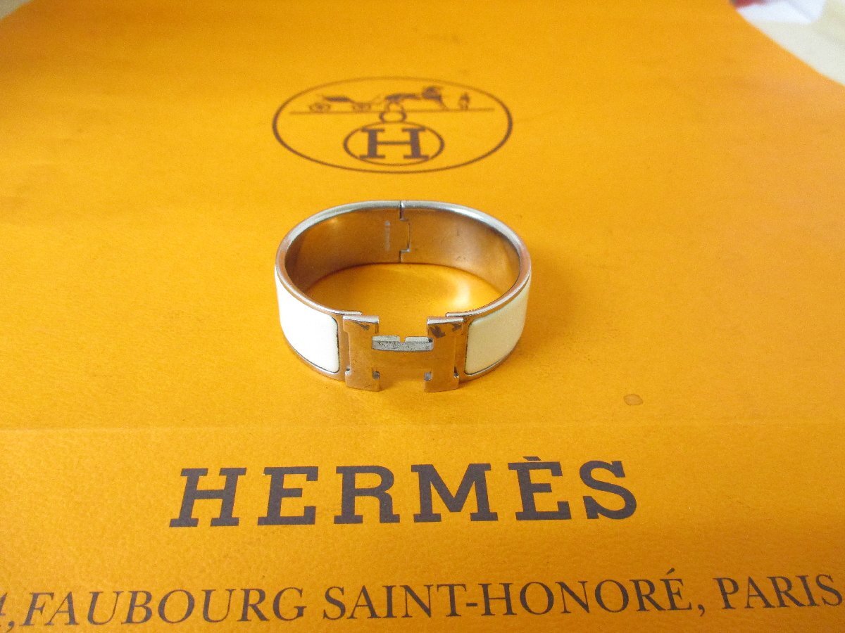 - 本物保証【即決で送料無料】ベージュXシルバー/エルメス/クリッククラックGM/バングル/男女兼用/HERMESの正規品