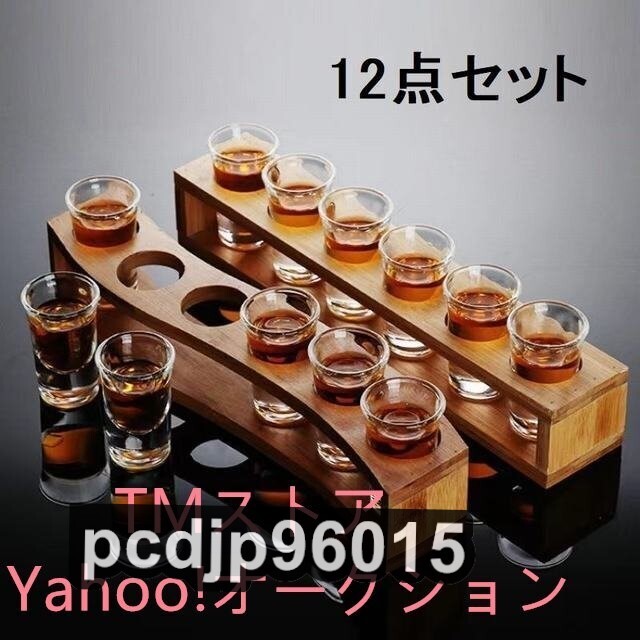 - ショットグラス12点セット+竹製サービングトレイ ショットグラスセット 1オンス ショットグラスホルダーセット テキーラウイス