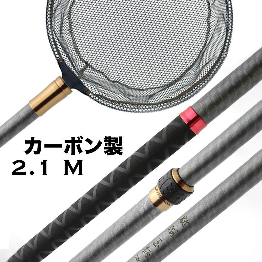 - YU214(型番2.1M) 磯玉セット 玉網 タモ網 タモ+柄 2点セット 折りたたみ ラバーコーティングネット 炭素繊維柄 伸縮式柄 カーボン製柄