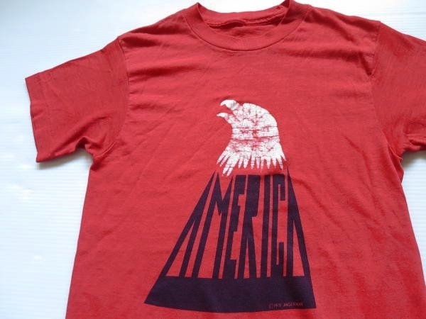 > 70's USA製 AMERICA イーグル 鷲 プリントTシャツ XS 赤 レッド レディース/ビンテージ オールド アメリカ古着 レトロ