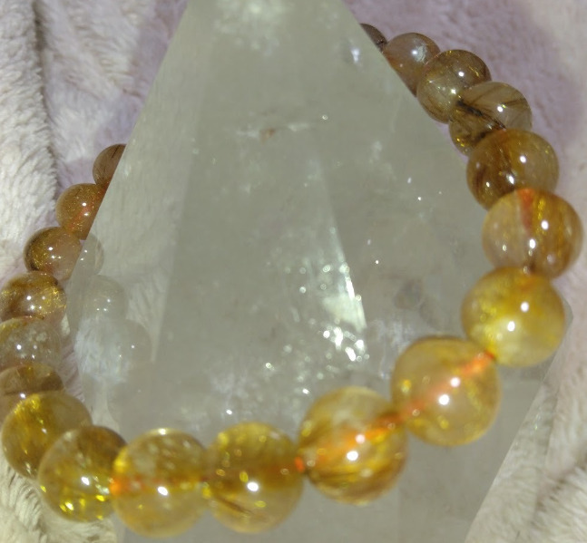 - 黄金天然ゴールドルチルクォーツ ブレスレット パワーストーン 天然石