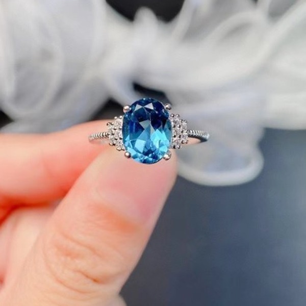 天然ロンドンブルートパーズリング、オフィスの女性のため2ct 7*9mm、925シルバー、3層ゴールドメッキ