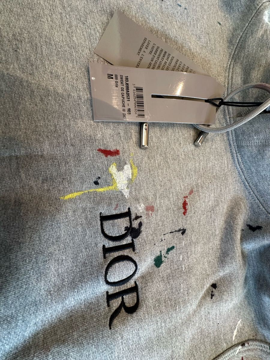 > #245 DIOR プルオーバー 未使用品 フーディ パーカー 灰 ペイント加工 キムジョーンズ 限定 ロゴ