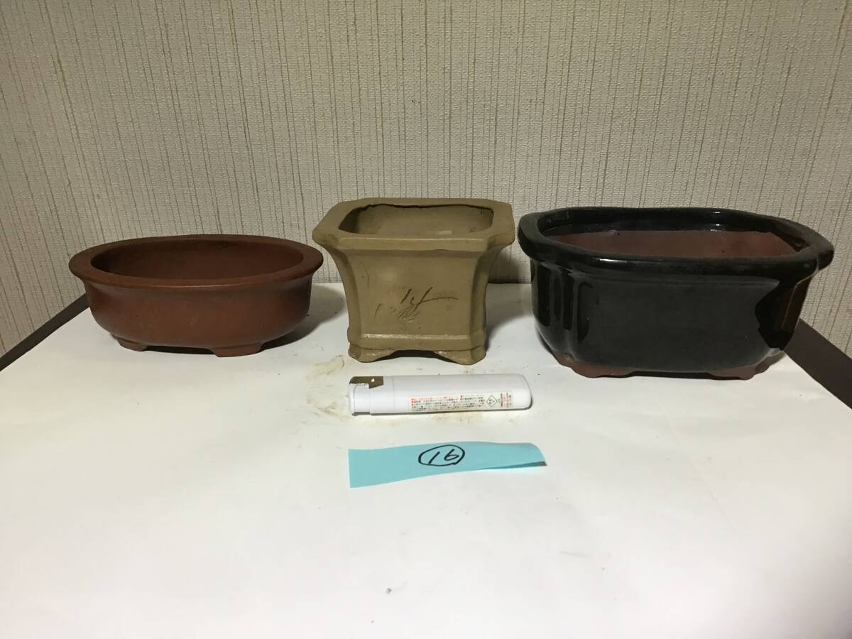 - 泥楕円、正方、楕円黒釉薬 小品 3鉢 16