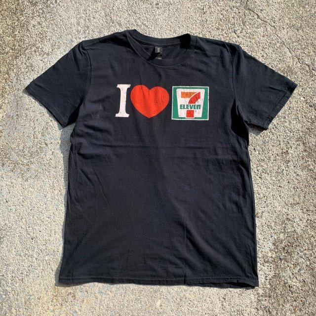 > 【S/M】「I 7 ELEVEN」プリントTシャツ ブラック 黒■アメリカ古着 コットン セブンイレブン コンビニエンスストア 企業