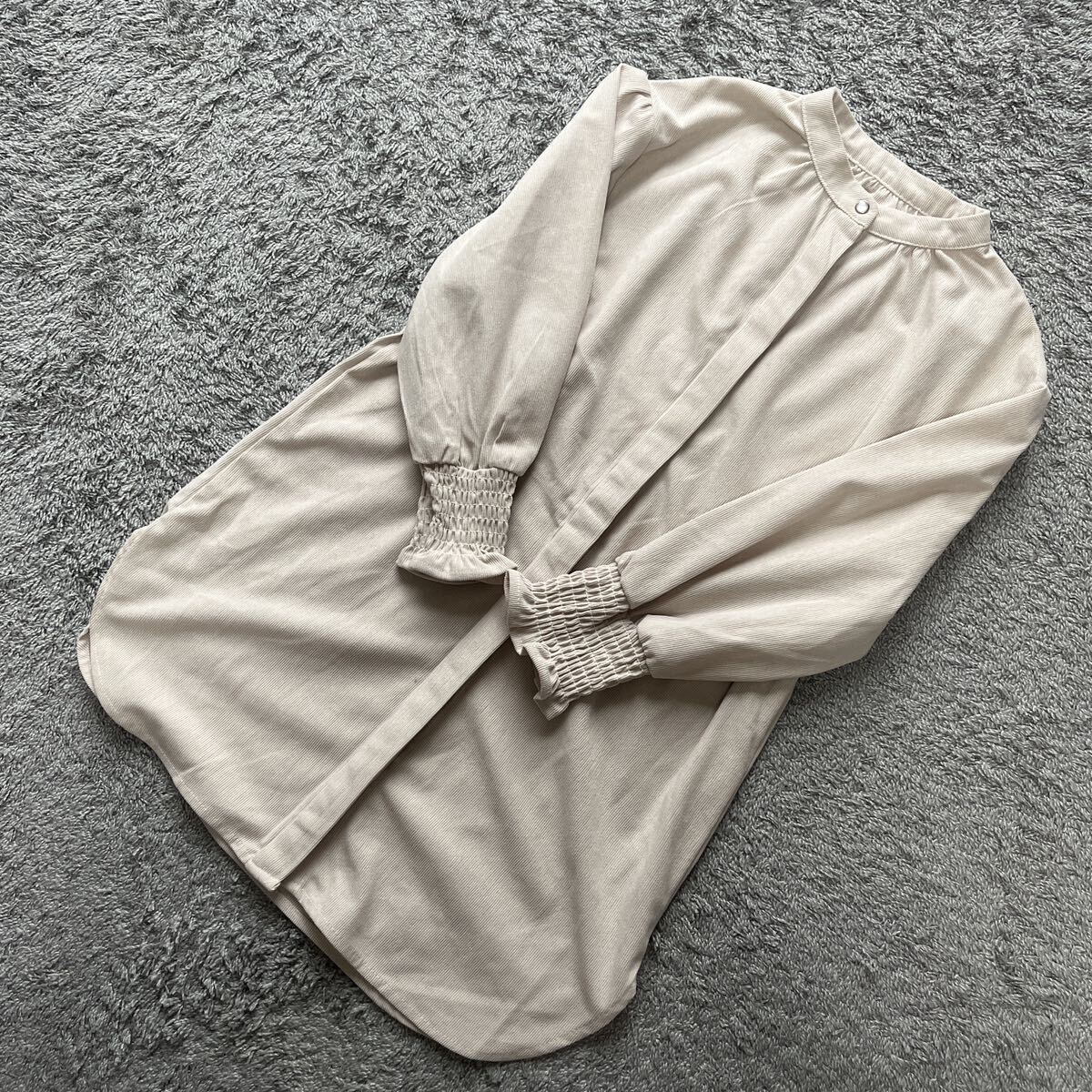 - こども服♪ノーカラー袖ギャザーフリルコールテンシャツベージュ120★ゆうパケット配送可能★新品25