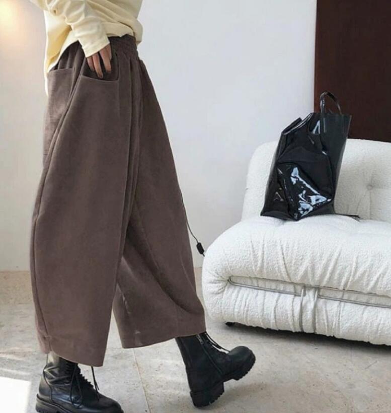 - 人気推薦/ カジュアル ぶかぶか パンツ ポワーンと広がるバルーンパンツ 大きいサイズ ウエストゴム ゆったり ワイドパンツ / チョコ